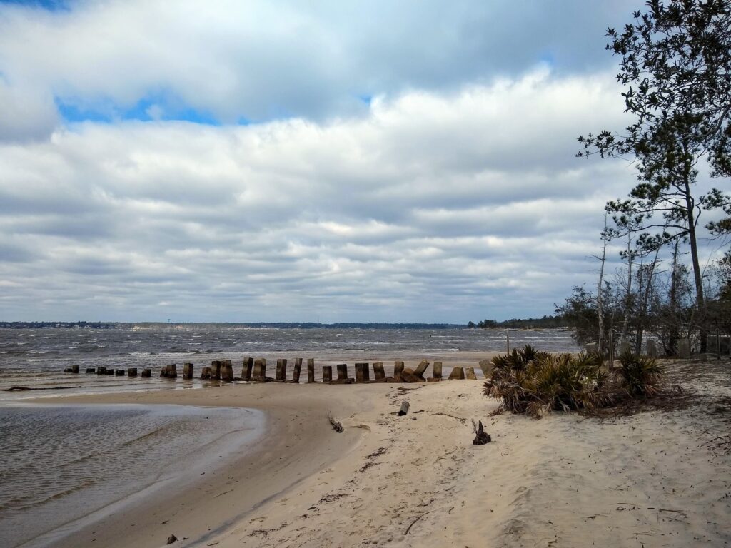 The high temperatures over the following days varied between 45 and 65. We hiked everyday we were there, in the park, as well as at Gulf Islands National Seashore and Tarkiln Bayou Preserve State Park. We would have loved to spend a day on Johnson Beach, but it was just too windy and too chilly on most days. I didn’t expect to see so many pine trees in Florida. They were mostly southern yellow pine. Hiking on the sandy trails was a lot like hiking near Lake Michigan, as we did all summer.